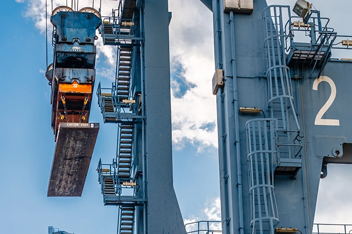 Deep-water berths, cranes, warehousing, and yards engineered for heavy metal logistics.